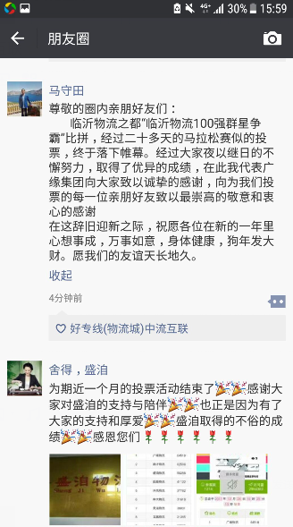 临沂物流之都好专线“群星争霸”赛广缘物流勇夺第一名。董亊长马守田致全体员工的一封感谢信